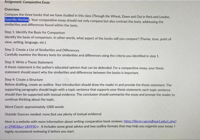 Assignment Comparative Essay Overview Compare The Chegg Com